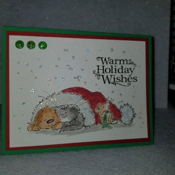 Set of 4 miscellaneous Christmas Kitty watercolor greeting cards.